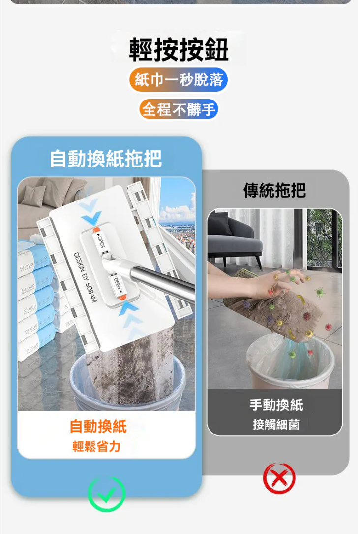 2分鐘前【台灣爆紅款 現貨秒發】3秒快速換布,免手洗超衛生,360度旋轉拖頭,深入縫隙無死角,磁磚、木地板都適用! - 【嘗鮮套餐】2入組-NT$980