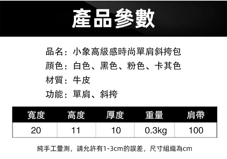 4分鐘前小象高級感時尚單肩斜挎包 - 一入组NT$799